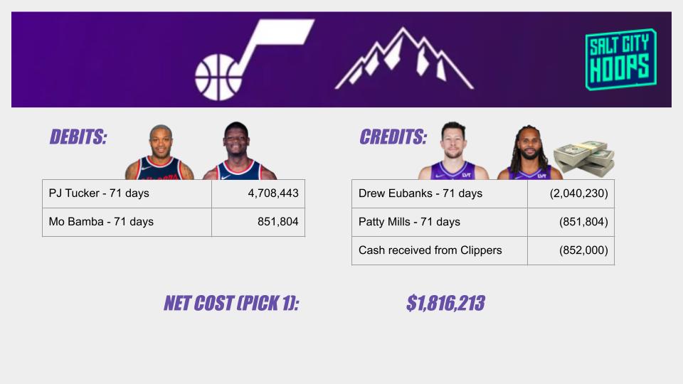 Fans on social media also questioned the price the Jazz paid for the incremental 2030 pick. The real cost of the pick acquisition is the number you get by offsetting the incremental salary the Jazz would pay Tucker and Bamba for the rest of the season with the amounts they saved by not paying Eubanks and Mills. The Clippers also sent cash in the deal, which was almost precisely the amount needed to pay Bamba’s salary for the remainder of the year.