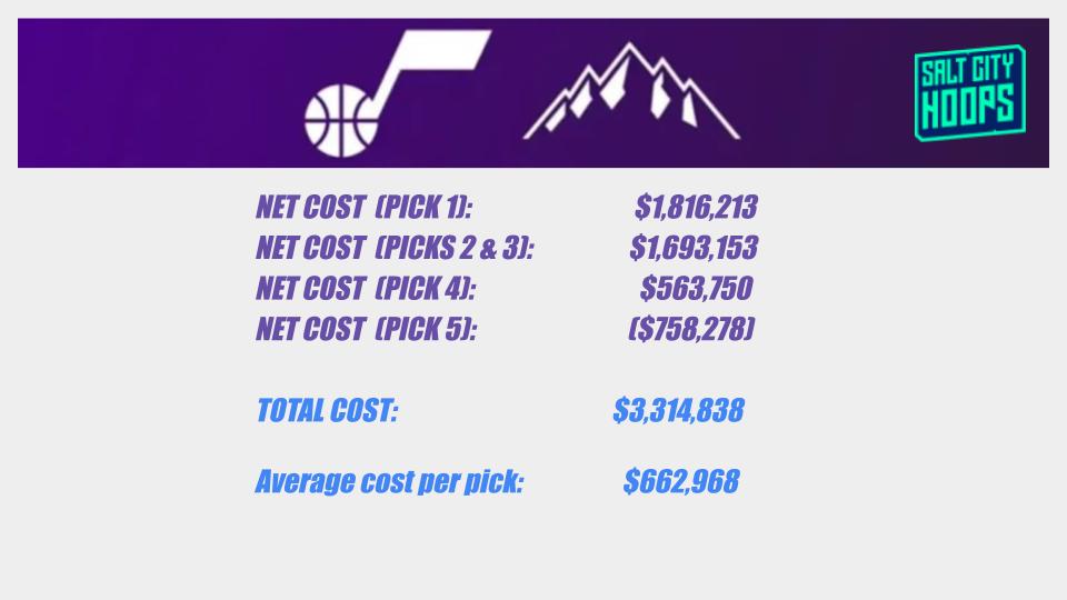Combining the individual trades into one massive accounting shows that the Jazz did very well, garnering five picks for just $3.3 million in incremental spend. Single picks have gone for that much in the past, although usually closer to the draft, when the selection will be used within days or hours.